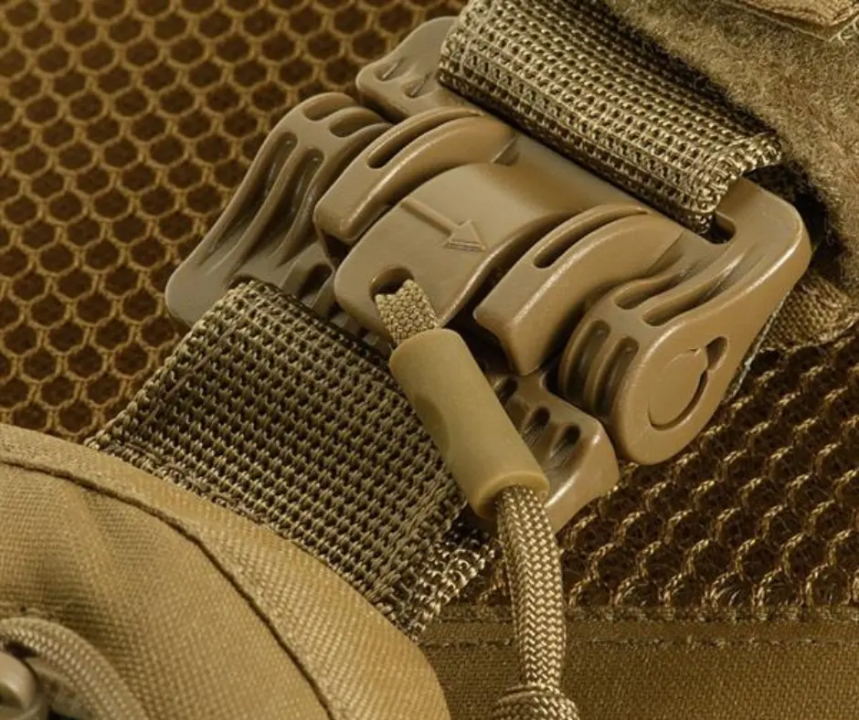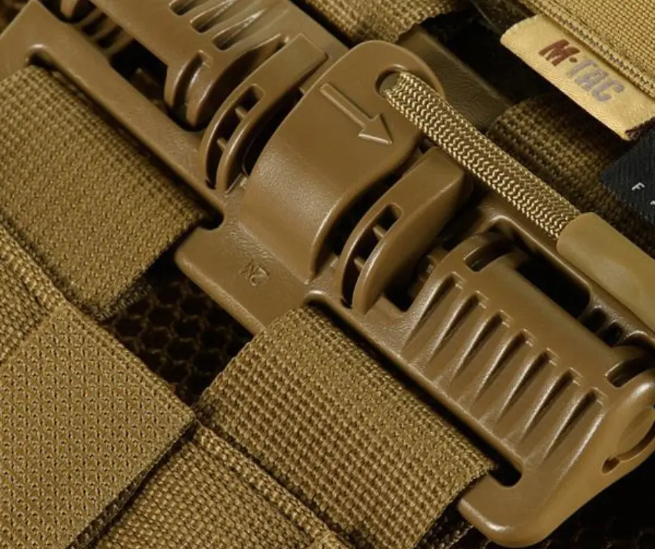 - უკანა მხარეს არის კლასიკური Molle სისტემა და სწრაფად ხსნადი სახელურები