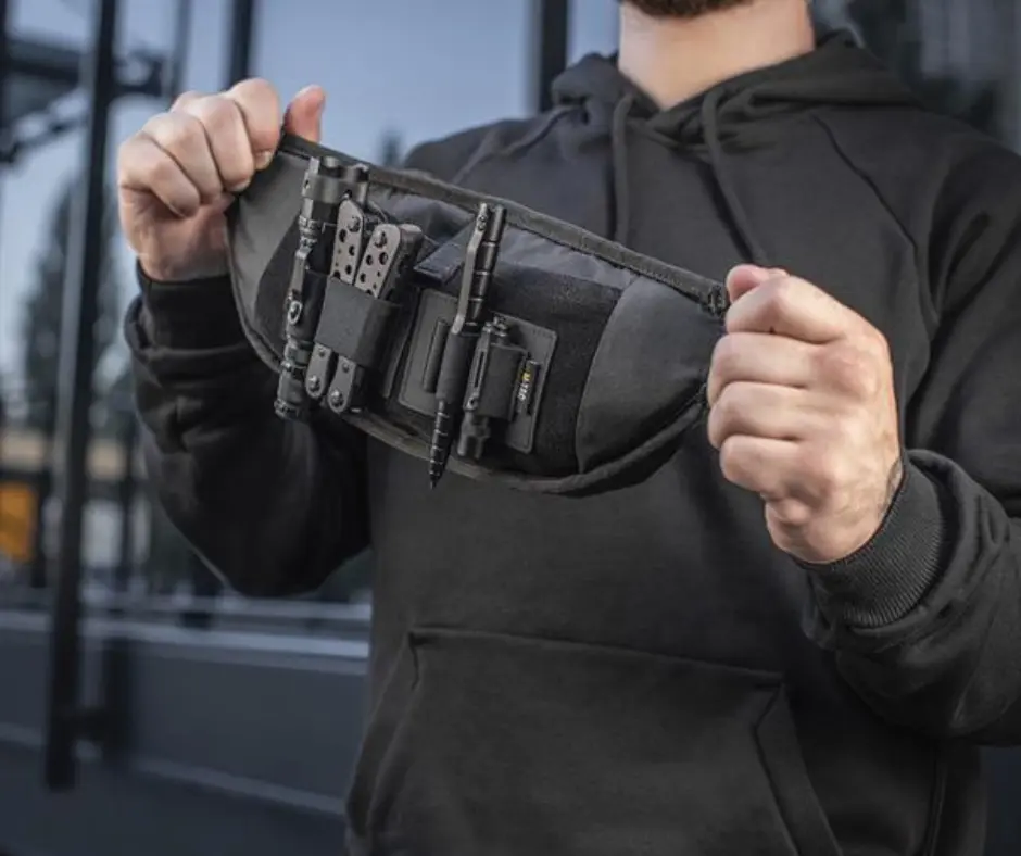 - გვერდით არის სპეციალური მარყუჟები დამატებითი აღჭურვილობის დასაკიდებლად
