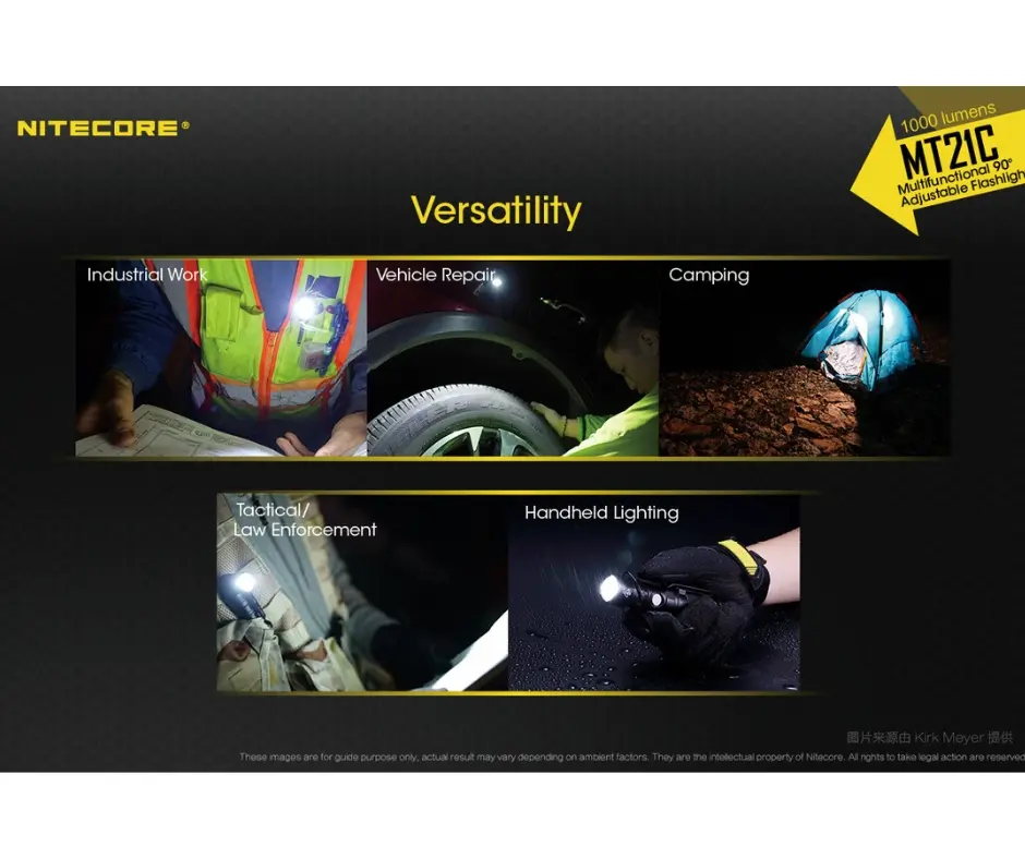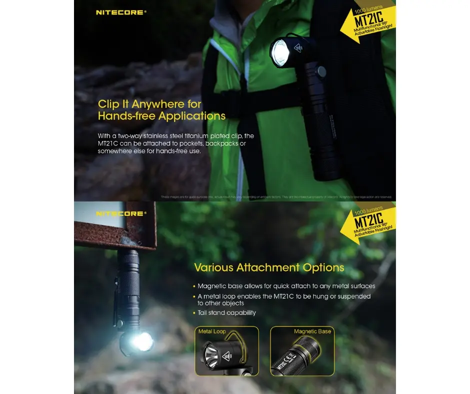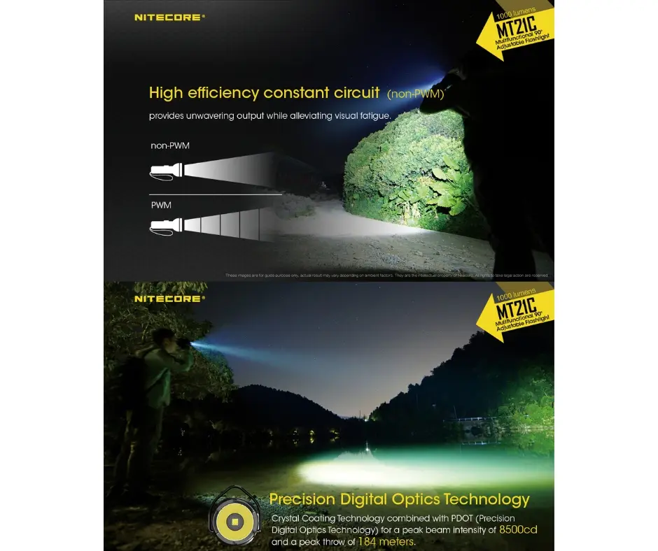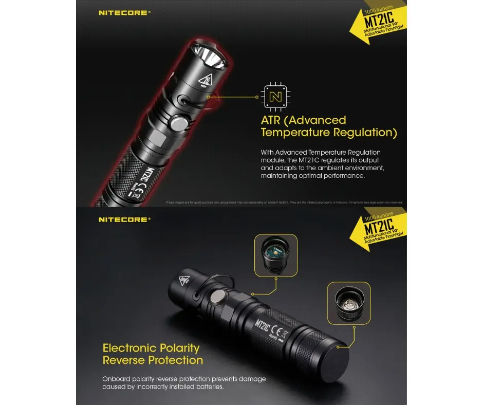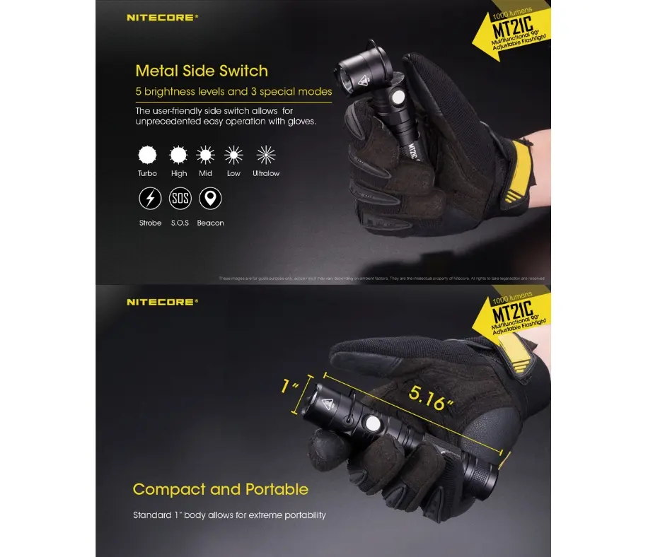 ელემენტი: 1 × 18650, 2 × CR123, 2 × RCR123 (არ მოყვება)