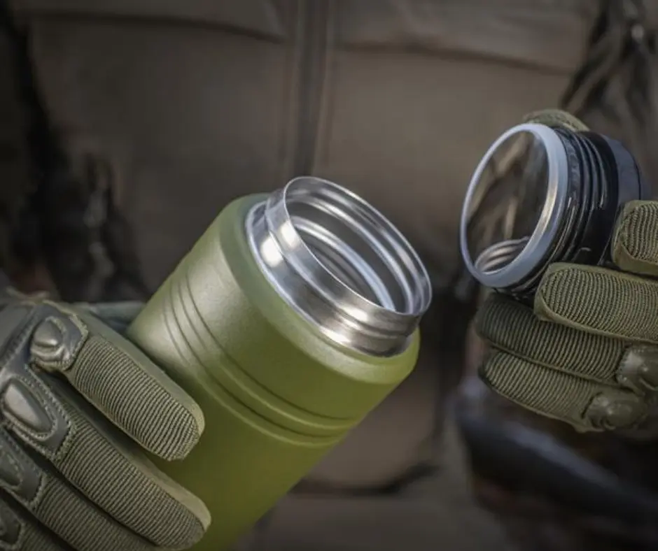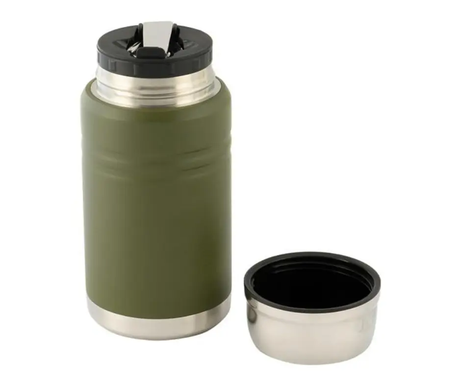 - თერმოსი იზოლირებული ჭიქით და დასაკეცი კოვზით