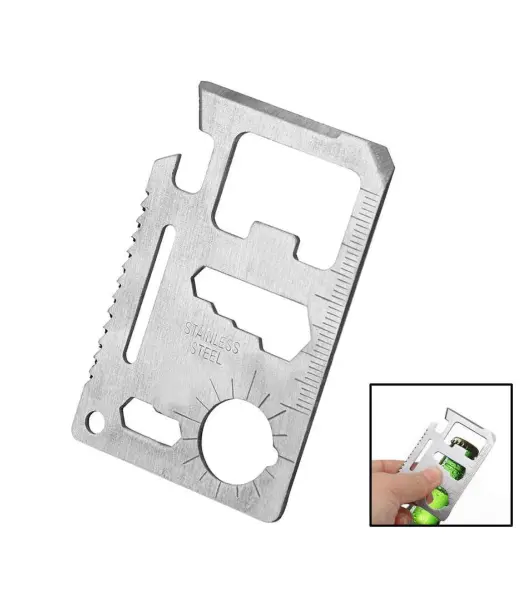 ხელსაწყოს აქვს სახაზავის, ხერხის, ბოთლის გასახსნელის ფუნქცია.