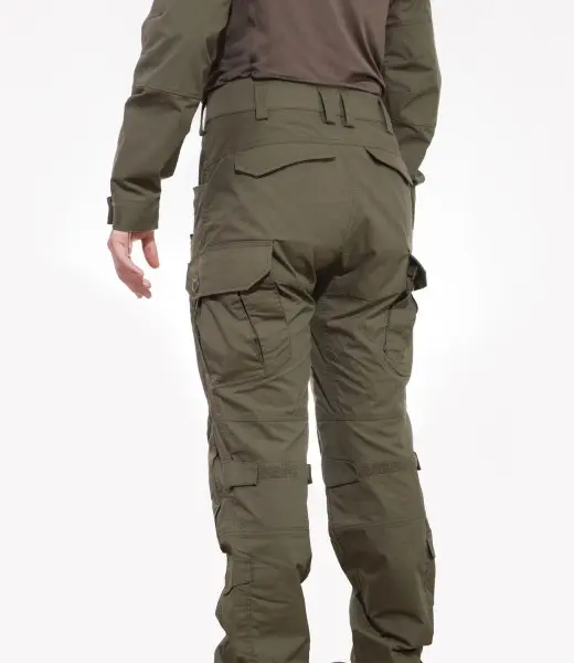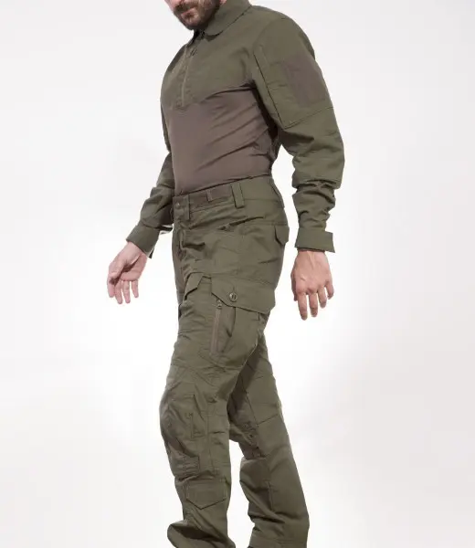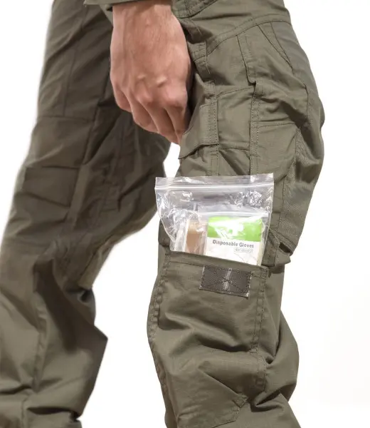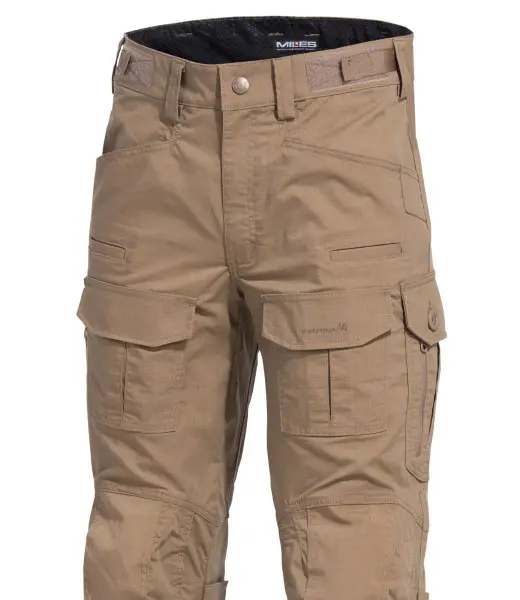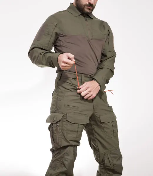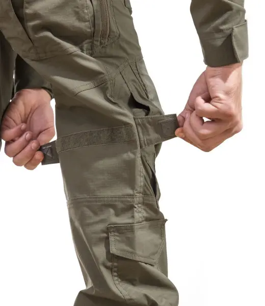 -მასალა: 65% პოლიესტერი 35% ბამბა -რეგულირებადი წელის ზოლი -სამუხლის ჩასადებით (რეგულირებადი) -ჯიბე: 12