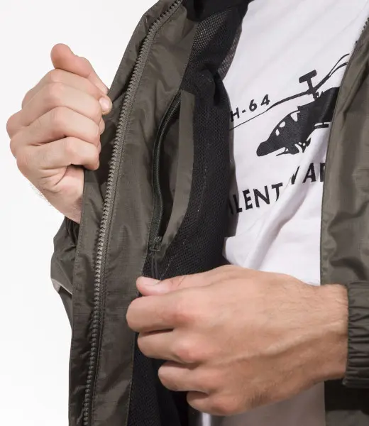 -მასალა: 100% ნეილონი - წყალგაუმტარი - შიდა გულმკერდის ჯიბე