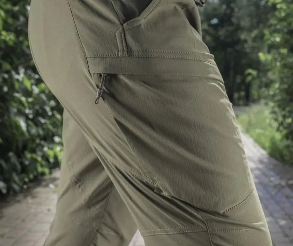 - ფართო ჯიბეები განლაგებულია გვერდზე