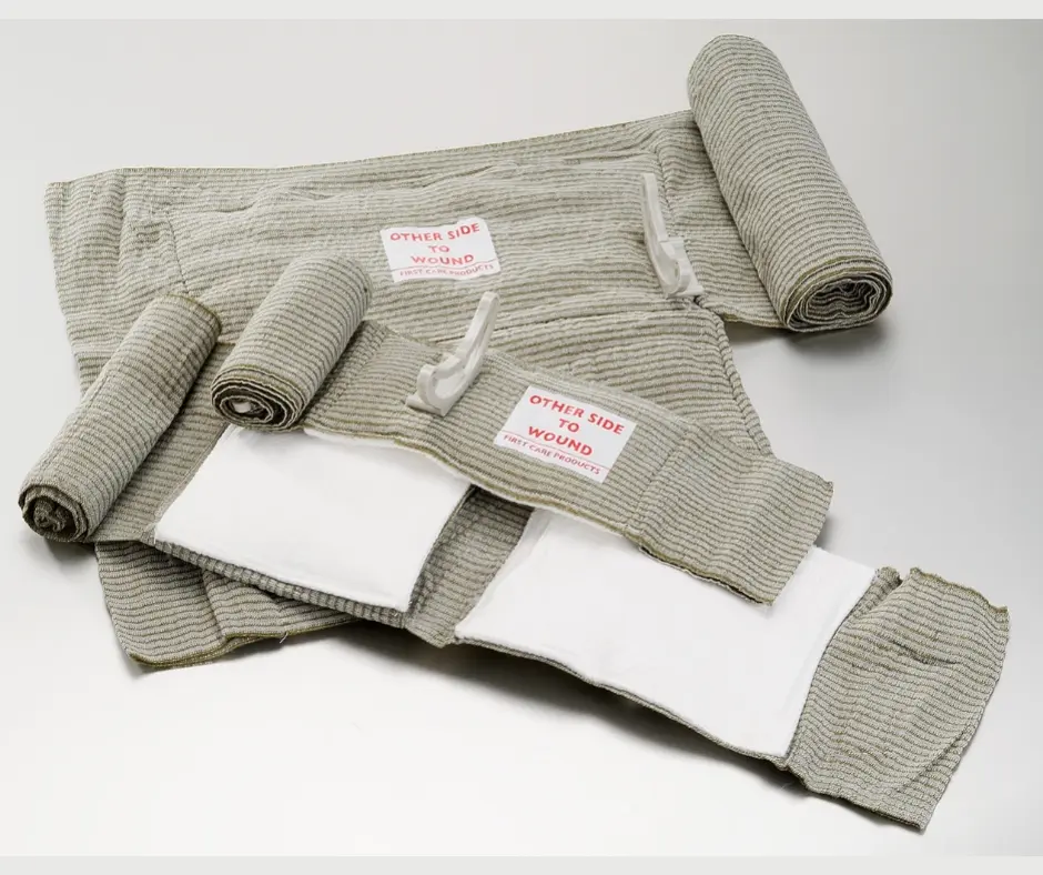 * კომპლექსური სისტემა: აერთიანებს დიდ სტერილურ საფენს, მტკიცე ელასტიურ ბინტს
