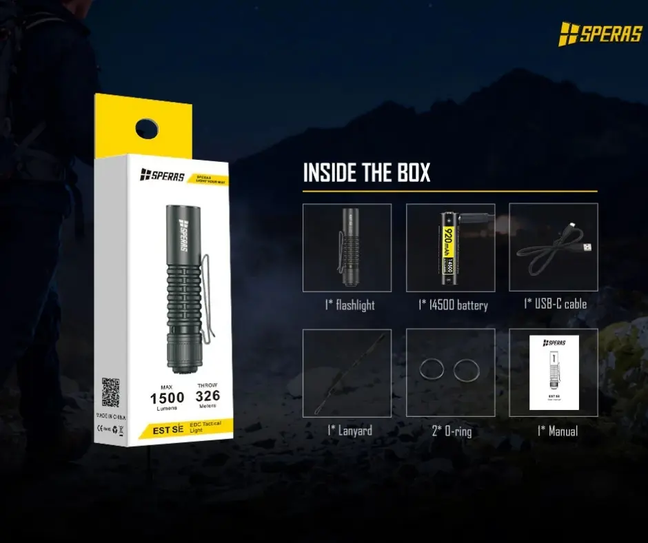 - სტანდარტული კონფიგურაცია მოიცავს 14500 920 mAh ლითიუმის ბატარეას USB-C დამუხტვით