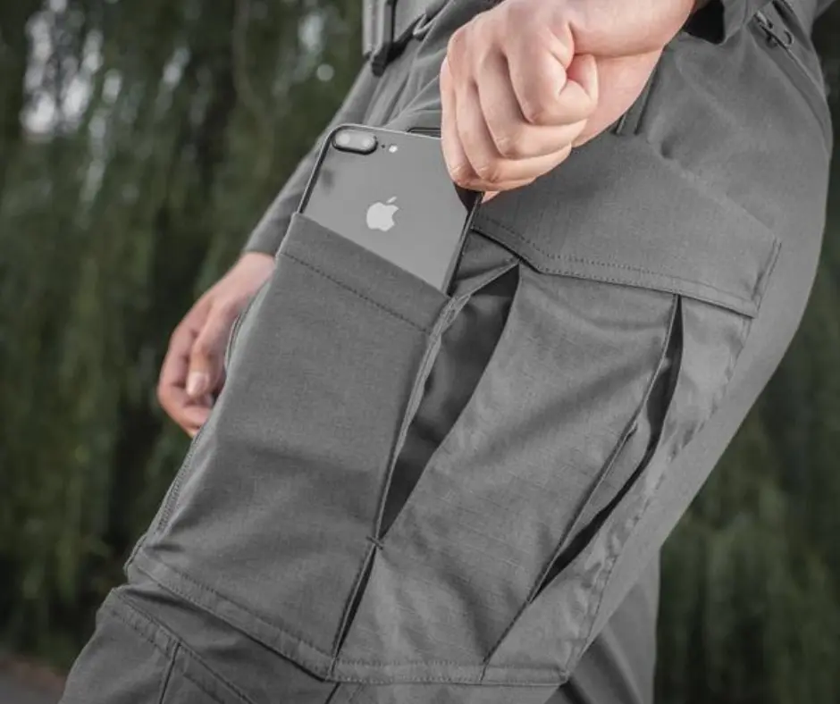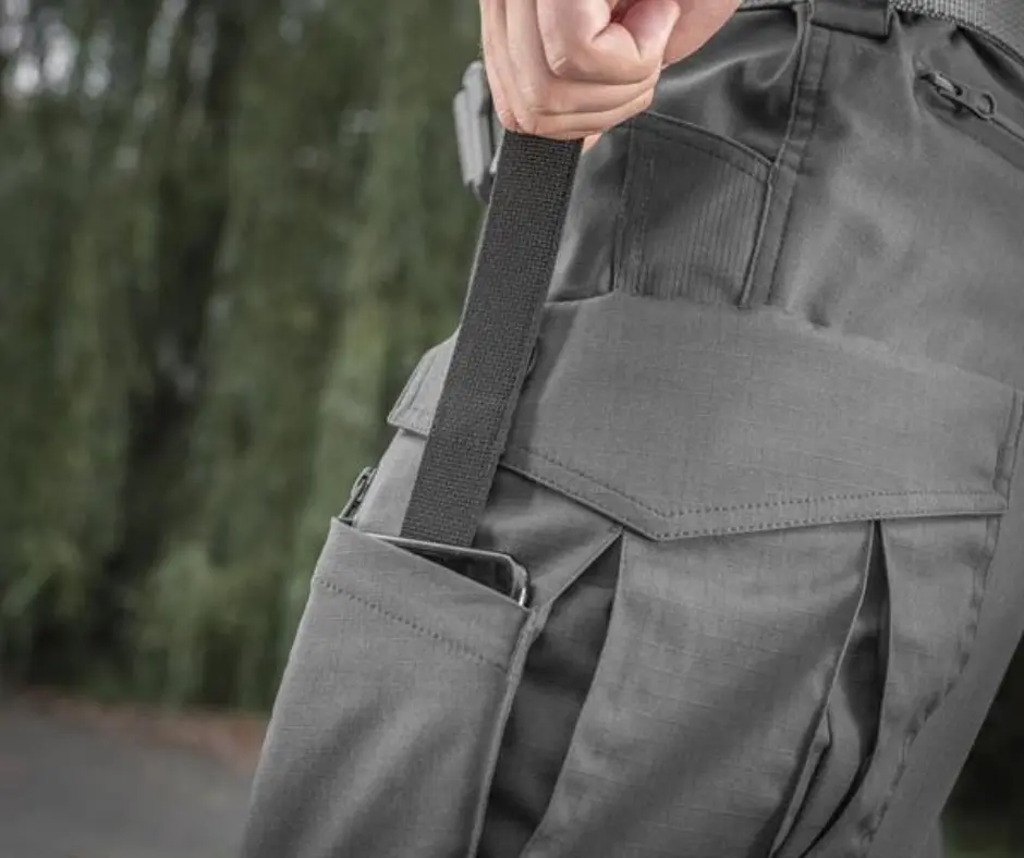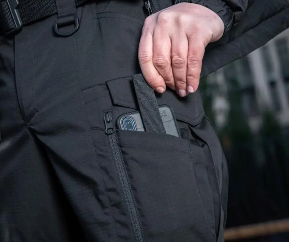 -2 გვერდითი ჯიბე (ქვედა ნაწილში გამაგრებით დანის დასამაგრებლად)