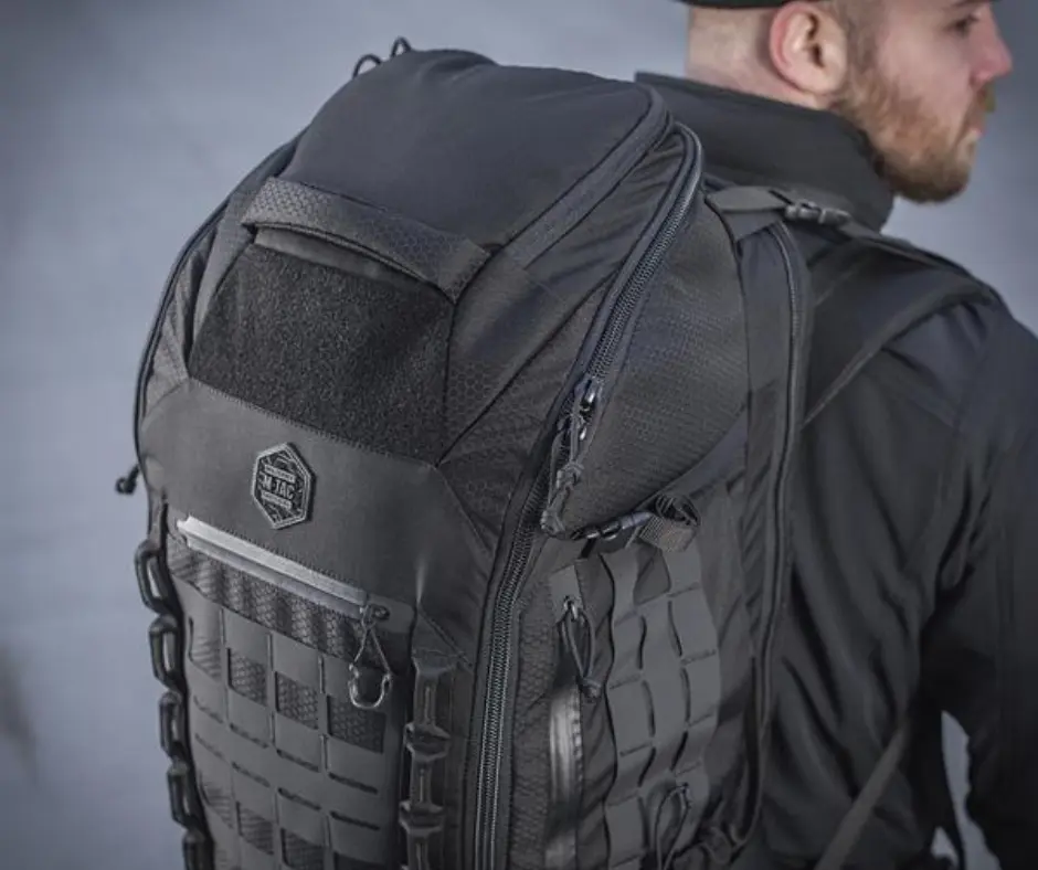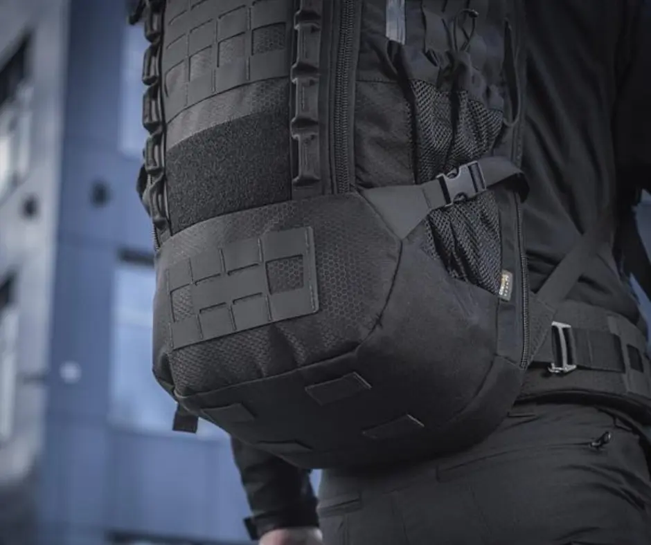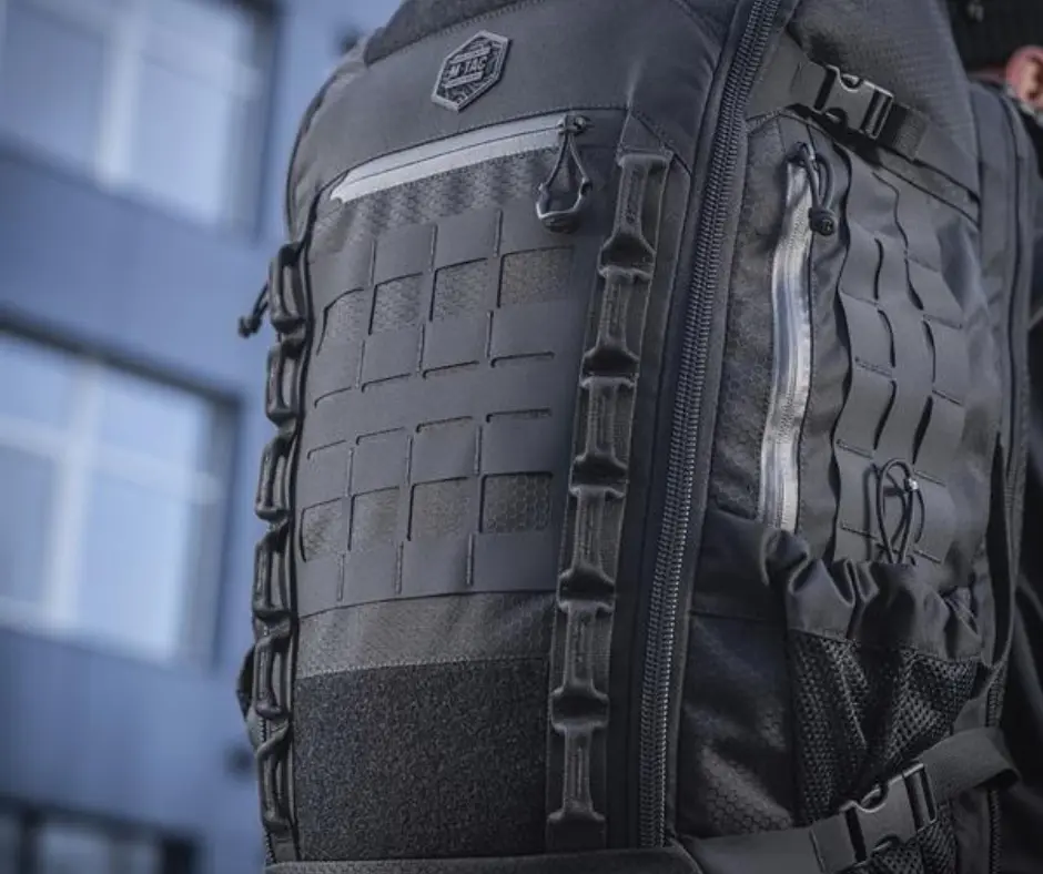 - ზურგჩანთის წინა და გვერდითი ნაწილები აღჭურვილია MOLLE LASER CUT სისტემით, რომელიც