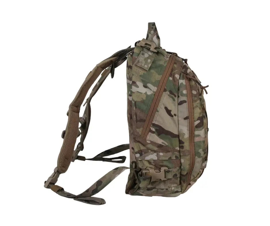 EmersonGear Assault ზურგჩანთას აქვს ჟილეტზე მიმაგრების შესაძლებლობა Molle სისტემებზე არსებული fastexes-ის გამოყენებით;