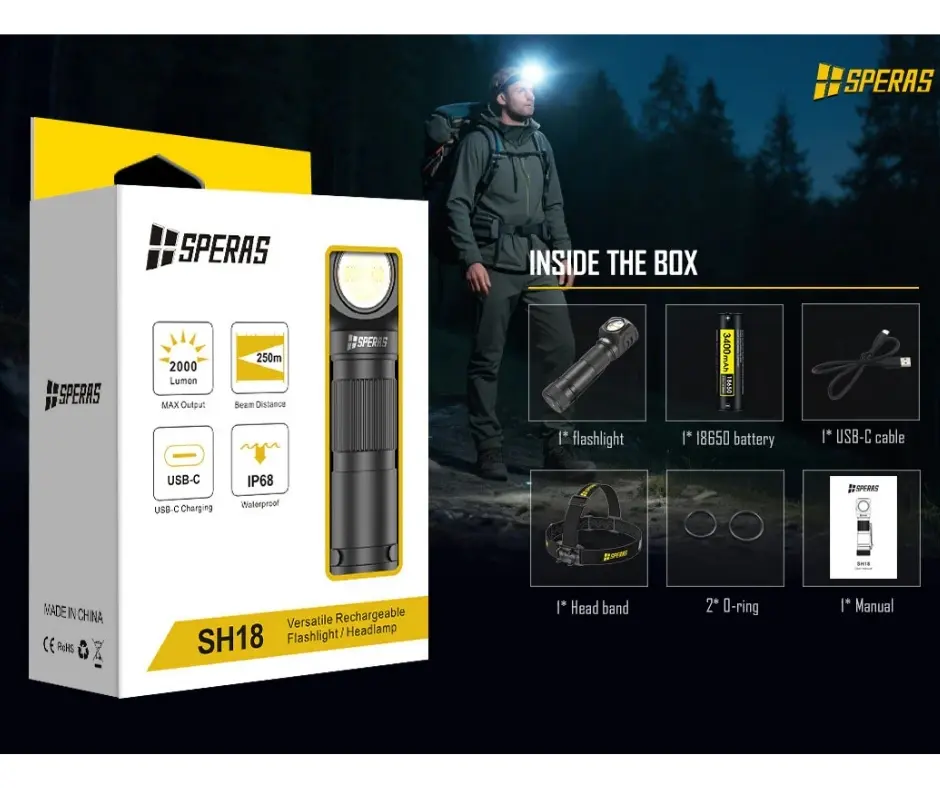 - თავსებადია 1 x 18650 ლითიუმის ელემენტთან ან 2 x CR123 ელემენტთან და USB-C დატენვა